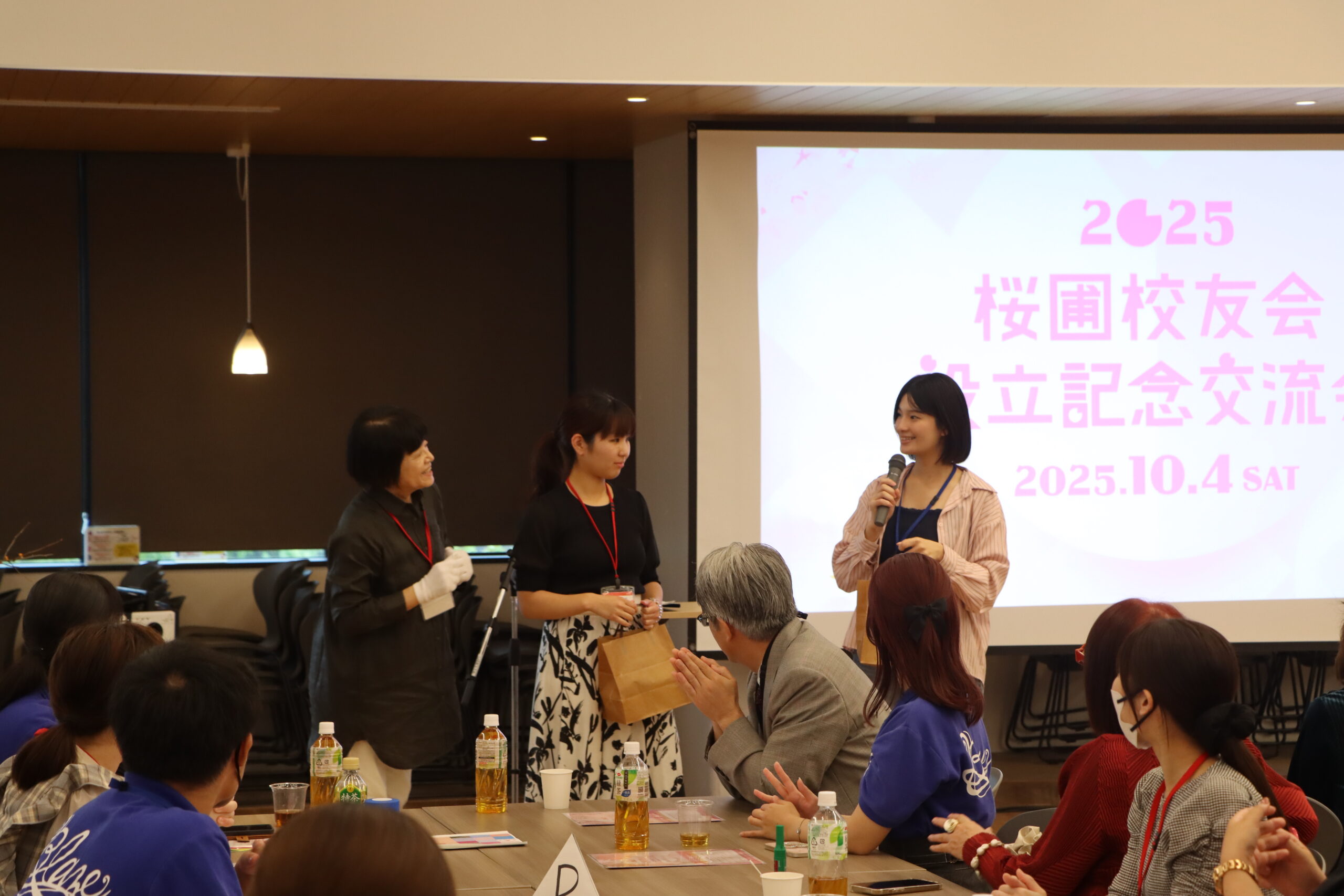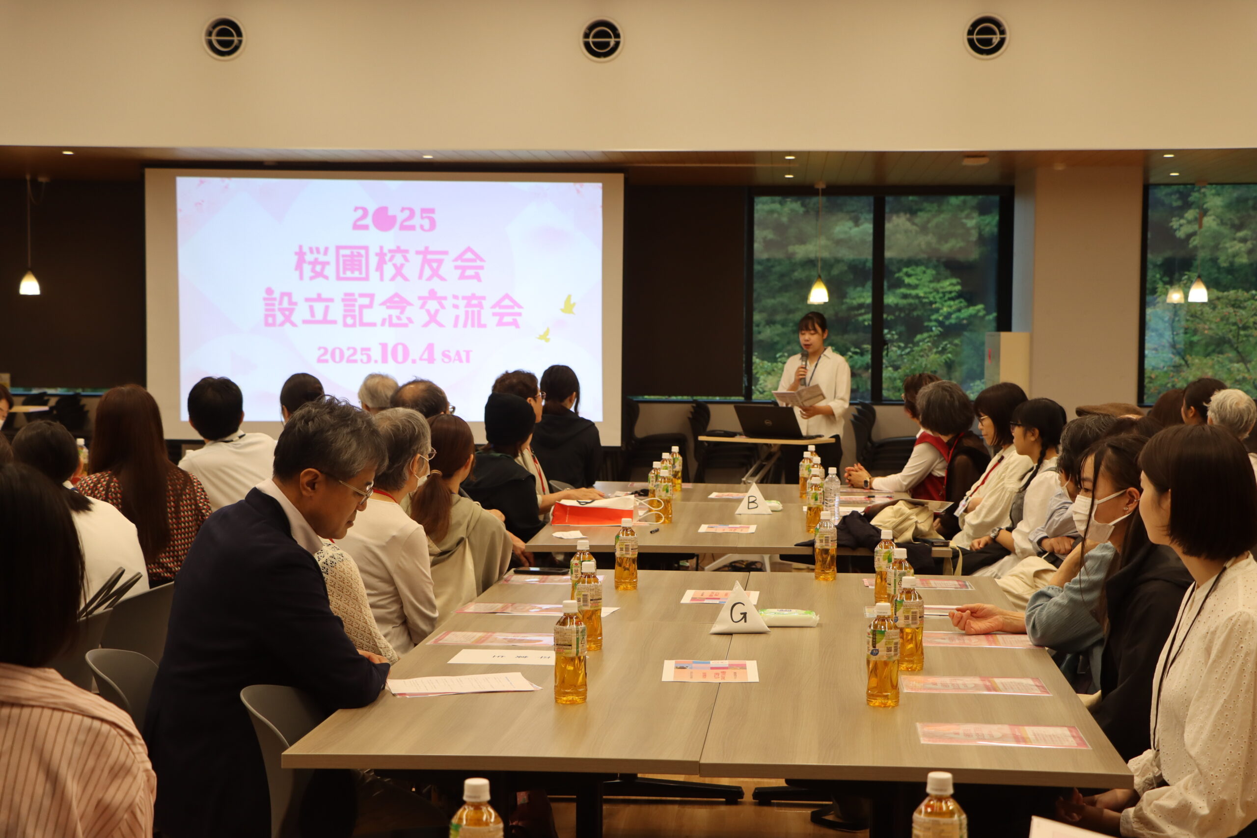 2025年10月4日(土)10:00~14:00、山口県立大学厚生棟において桜圃校友会の設立記念交流会を催しました。当日は、卒業生、在学生、教職員、退職教職員など100名以上が集まり、交流会を祝いました。