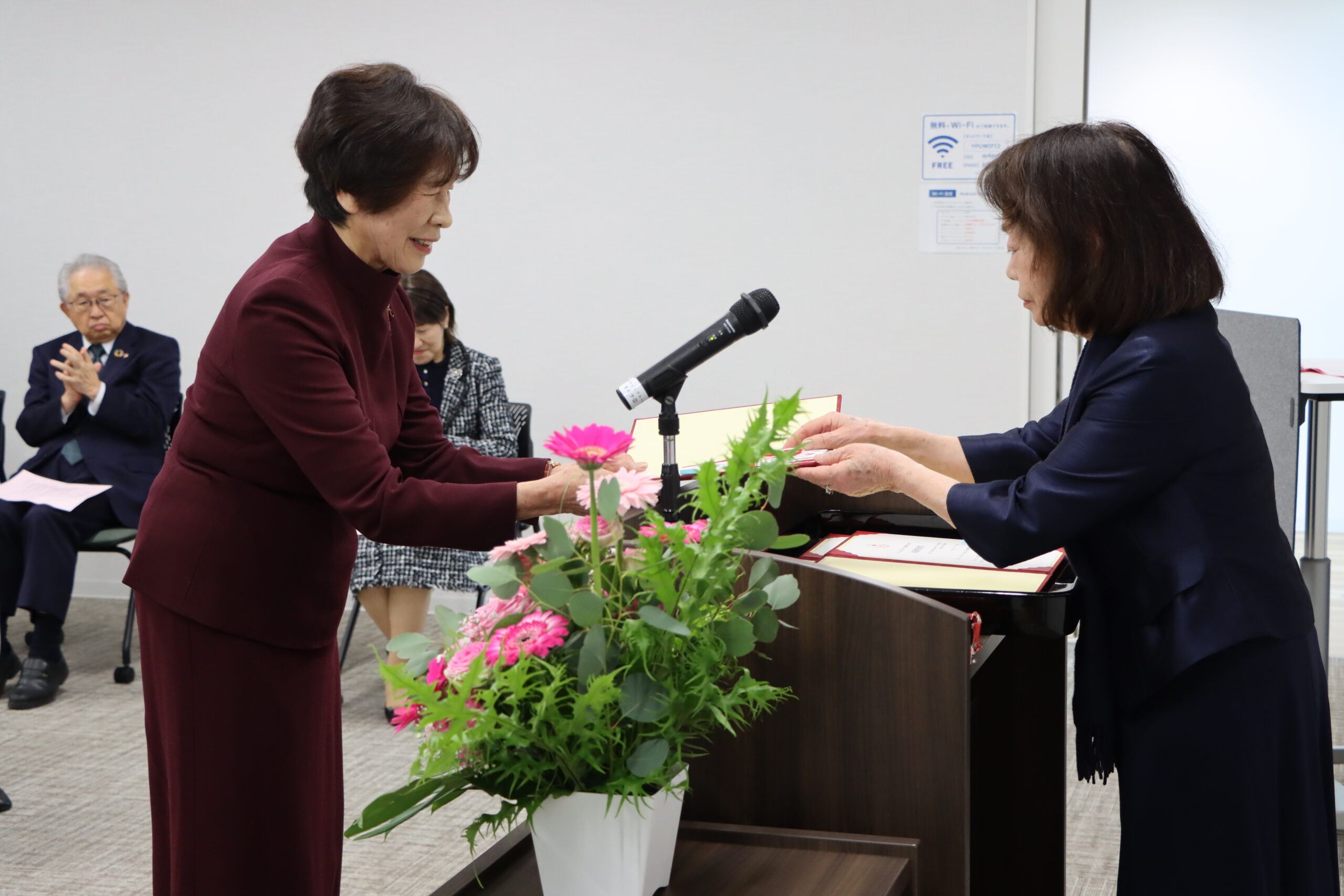 賞状と賞金の10万円が相本艶子理事長から手渡され、各賞受賞者からあいさつがありました。